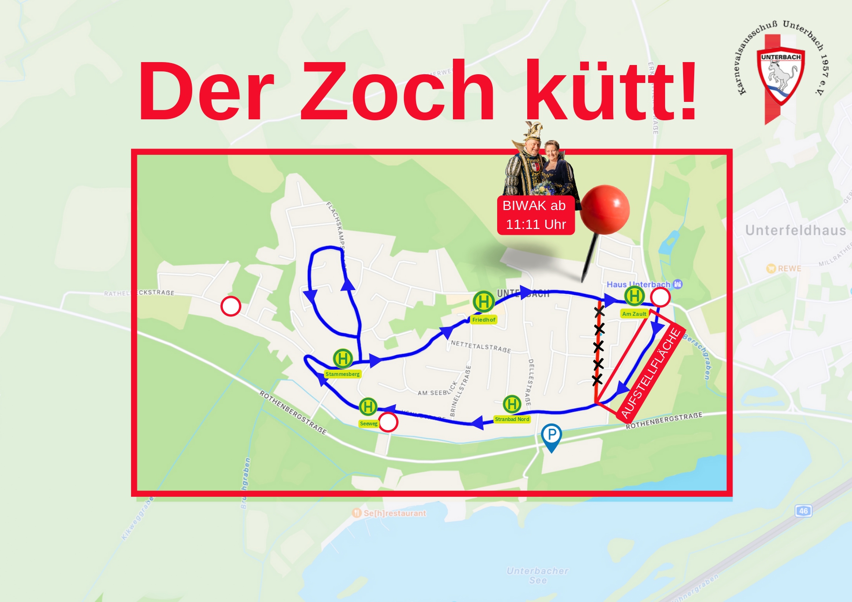 Steht auf! Macht Laut!Wenn Unterbach bunt und laut wird, ist es wieder Zeit für unsere legendäre Biwak-Party! Der Karnevalsausschuß Unterbach lädt euch herzlich ein zu einem Jecken Treffpunkt voller Musik, guter Laune und echtem Karnevalsgefühl. 📅 Samstag, 15. Februar⏰ ab 11:11 Uhr📍 Kreuzung Gerresheimer Landstraße / Am Strasserfeld🎟️ Eintritt frei! Freut euch auf ein abwechslungsreiches […]
